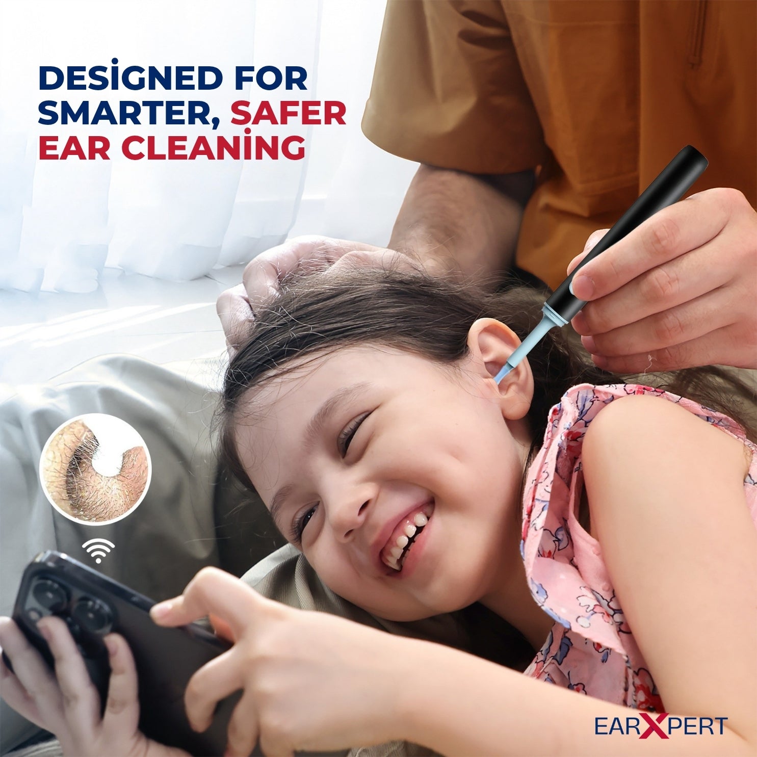 EarXpert connects to your phone so you can see inside the ear canal while cleaning making ear care safer, easier, and more precise for you and your family.